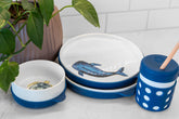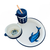 Set Includes: Whale Shark Plate (9"), Turtle Bowl (4"), Cup, plus coordinating silicone base, lid, and straw.